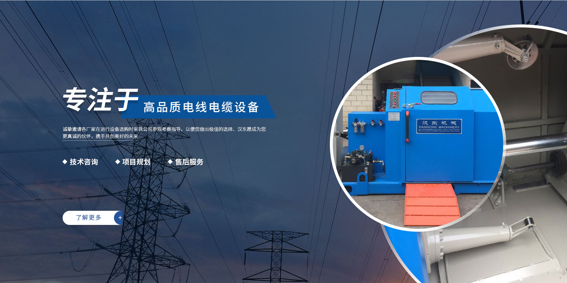 常州漢東機(jī)械始創(chuàng)于2006年,是集電線電纜機(jī)械設(shè)計(jì)、開(kāi)發(fā)、制造、安裝、調(diào)試為一體化的高科技企業(yè)。本公司自開(kāi)業(yè)以來(lái),積極引進(jìn)日本,歐美等國(guó)外電線電纜設(shè)備之先進(jìn)技術(shù),先后成功推出了達(dá)到行業(yè)先進(jìn)水平的電線電纜設(shè)備,主要產(chǎn)品有擠出、繞包、束線、成纜等電線電纜固定設(shè)備。在提供系統(tǒng)設(shè)備的同時(shí),還向客戶提供售前技術(shù)咨詢、項(xiàng)目規(guī)劃、以及售后服務(wù)。我公司本著“以人為本、科技先導(dǎo)、用戶為上”的宗旨,為客戶提供牢靠的產(chǎn)品與省心的服務(wù)。漢東愿成為您更真誠(chéng)的伙伴,攜手共創(chuàng)美好的未來(lái)! 了解更多+大核心優(yōu)勢(shì)